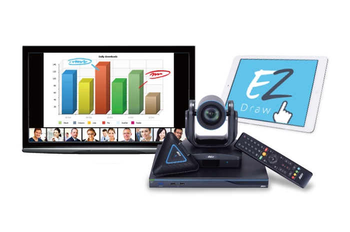 AVer EVC350 là giải pháp hội nghị truyền hình hoàn hảo cho phòng họp lớn và hội trường. EVC350 cung cấp 1 giải pháp hoàn thiện lên tới 04 điểm full HD 1080p video và content với một chi phí thấp nhất. Kết hợp phần mềm EZmeetup, EVC 350 cho phép người dùng có thể sử dụng laptop, PC, điện thoại và máy tính bảng có thể tham gia vào buổi họp trực tuyến.