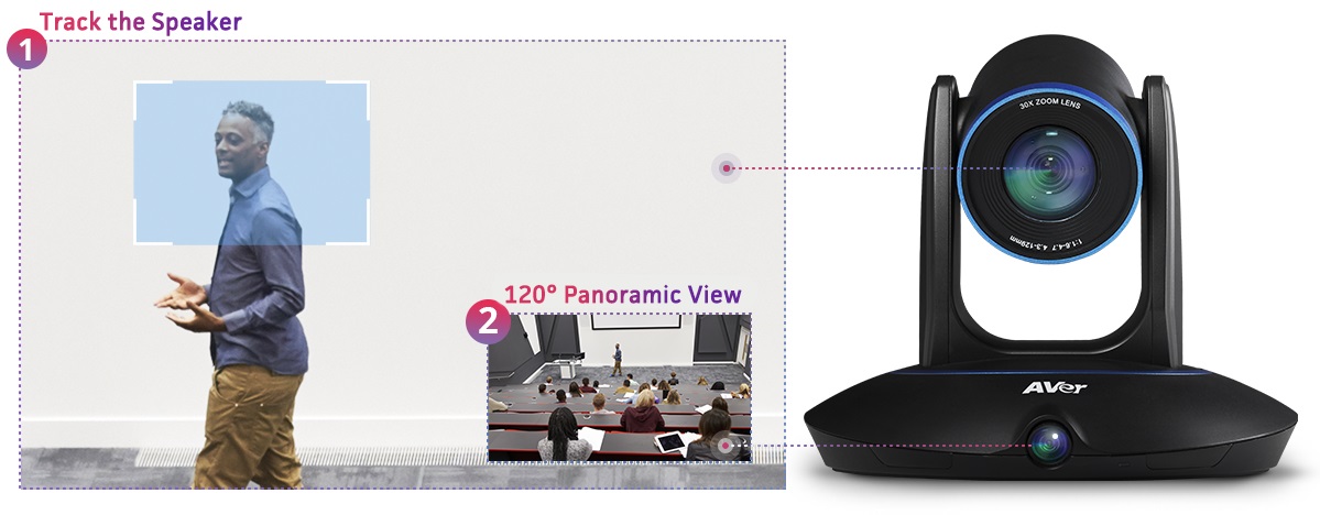 AVer PTC500S với các thuật toán độc quyền cho phép tự động nhận diện để theo dõi khuôn mặt và các chuyển động của người thuyết trình. Vì thế các diễn giả có thể tự do đi lại khi trình bày nội dung mà không cần đeo thêm bất kỳ phụ kiện nào khác giúp người thuyết trình có thể tập trung vào nội dung và tương tác với người nghe mà không hề có khoảng cách.
