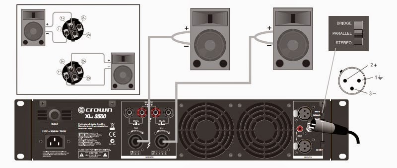 - Công suất ra của cục đẩy: thông thường thì những công suất ghi chỉ tiêu công suất tương ứng với các mức tải thông dụng khi mắc loa parallel hoặc đấu nối big mono.
