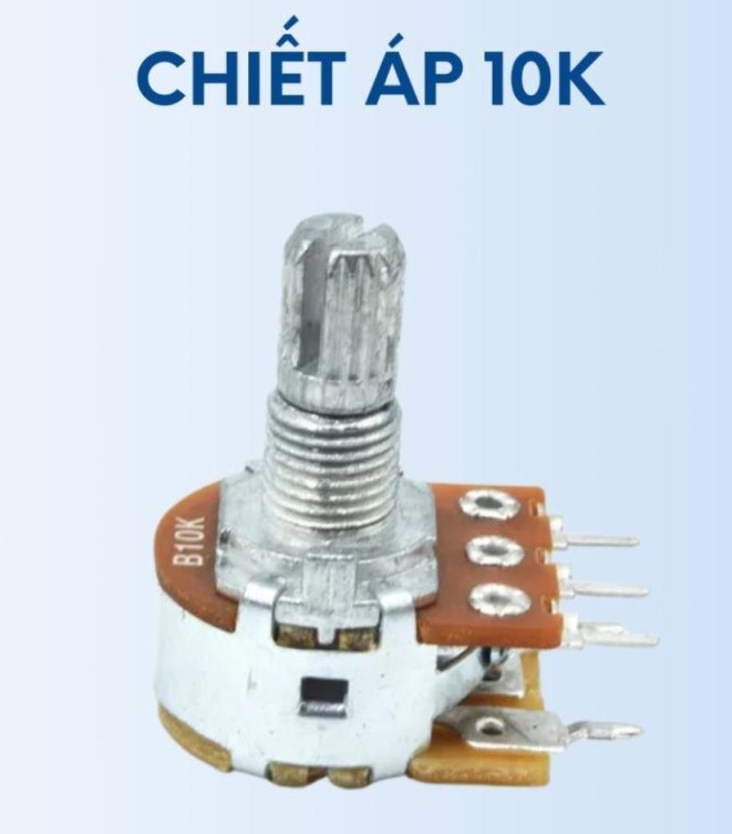 Chiết áp 10K, còn gọi là biến trở 10K, là linh kiện điện tử có giá trị điện trở tối đa 10 kilo-ohm (10.000 ohm). Số "10K" đặc trưng cho khả năng thay đổi điện trở từ 0 đến 10.000 ohm. Thông thường, chiết áp này có công suất điện từ 0.25W đến 2W, tùy thuộc vào kích thước và ứng dụng, với độ chính xác từ 5 đến 20%.