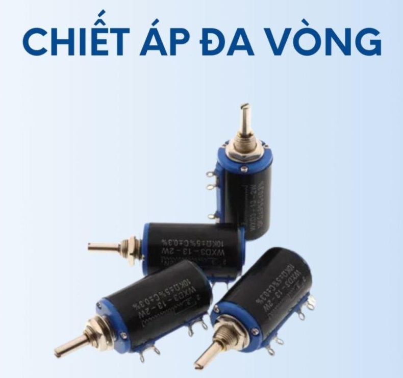 Chiết áp đa vòng cho phép điều chỉnh điện trở với độ phân giải cao nhờ trục xoay nhiều vòng, tăng độ chính xác trong quá trình điều chỉnh. Loại chiết áp này thường được sử dụng trong các thiết bị đo lường chính xác, mang lại hiệu suất ổn định và đáng tin cậy cho các ứng dụng yêu cầu độ chính xác cao.