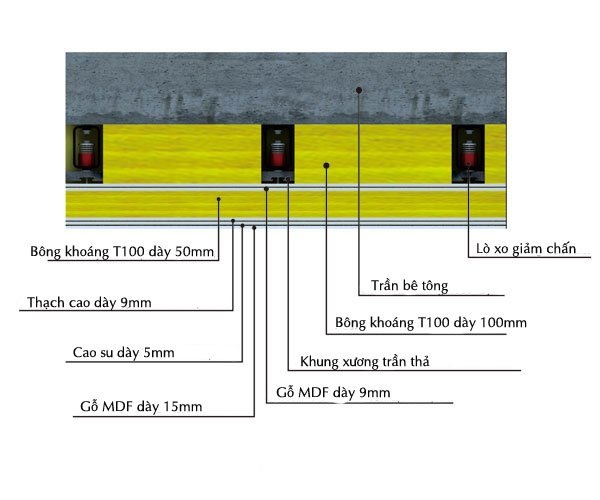 Đệm lò xo giảm chấn cách âm được cấu tạo bởi 2 thành phần chính: