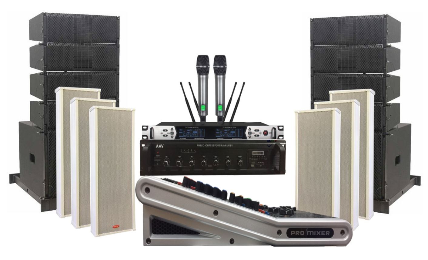 Tùy vào diện tích và nhu cầu sử dụng, bạn có thể lựa chọn cấu hình dàn âm thanh từ cơ bản đến nâng cao. Dưới đây là một cấu hình tiêu chuẩn phù hợp với nhà văn hóa quy mô vừa (100 – 300 người):