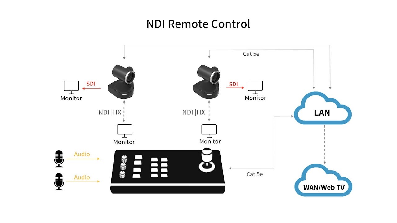 Tích hợp luồng ra thông qua cổng NDI,3G-SDI, HDMI, USB cho phép xuất hình ảnh chất lượng 1080P cùng lúc và tương thích với nhiều ứng dụng khác nhau thông qua HDMI và IP, hỗ trợ chuẩn nén hình ảnh H.264 và H.265.
